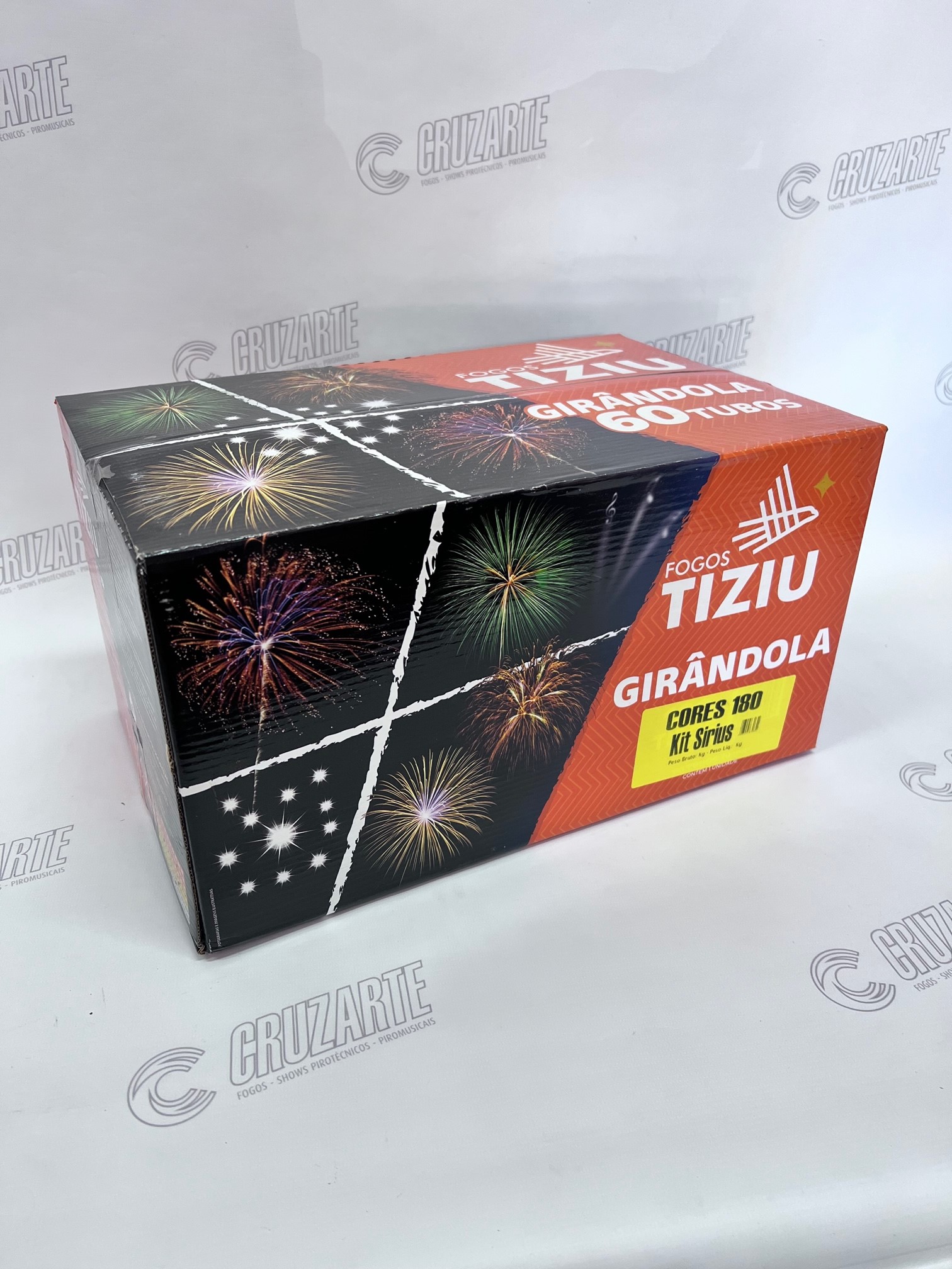 A Girândola 180 Tubos da marca Tiziu oferece um espetáculo de cores com baixo ruído para seu evento. Com tempo aproximado de queima de 40 segundos, este equipamento é ideal para apresentações seguras e visualmente impactantes.